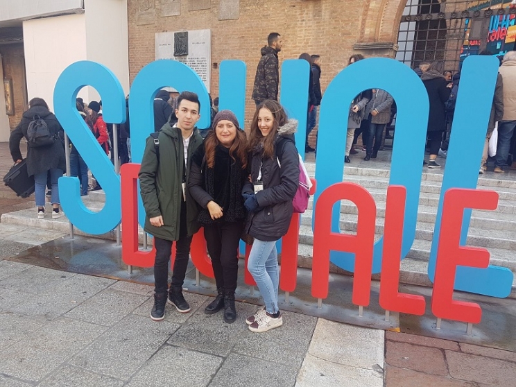 La scuola digitale ha invaso la città di Bologna dal 18 al 20 gennaio mettendo in scena “Futura”, tre giorni di iniziative formative, dibattiti, racconto di buone pratiche pensata dal Ministero dell’Istruzione, dell’Università e della Ricerca e realizzata in collaborazione con il Comune di Bologna per fare il punto sui temi del Piano Nazionale Scuola Digitale, e sulla sua attuazione, a due anni dalla sua introduzione. Elisabetta Rullo e Matteo Falcioni, studenti rispettivamente dell’Istituto Tecnico Economico e Liceo Scientifico “ Francesco Filelfo” di Tolentino, accompagnati dall'insegnante Paterniti, hanno partecipato, dopo varie selezioni, a tre giorni di lavori di progettazione nel capoluogo emiliano. Gli studenti divisi in commissioni hanno affrontato temi impegnativi che richiedevano un’elevata preparazione sia nella lingua inglese sia nella conoscenza delle tematiche portate avanti dal piano digitale del Miur. Una bellissima esperienza dove la scuola si è messa in gioco, facendosi promotrice del cambiamento, sostenendo le nuove generazioni nel loro percorso di crescita, orientando e fornendo loro contenuti e strumenti per governare i tempi che verranno. Una scuola che si rinnova nelle metodologie didattiche, negli spazi di apprendimento, trovando nel digitale la sua strada verso un domani di sviluppo sano, equo e sostenibile. Le giornate di ‘Futura’ sono state una straordinaria occasione di protagonismo delle idee, delle ambizioni di tutte e tutti coloro che compongono la comunità scolastica.