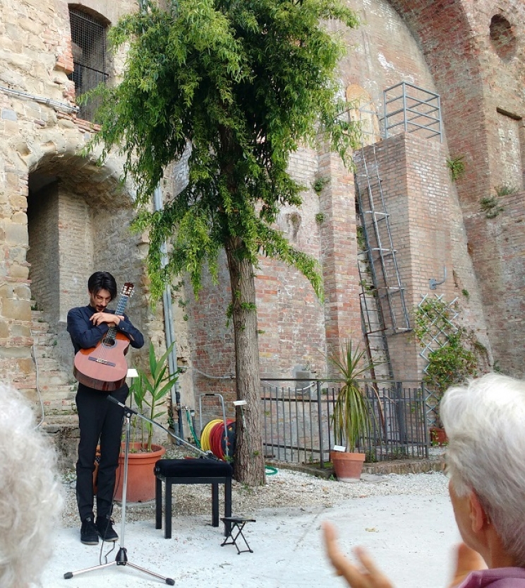 E' cosiì che, dal tramonto fino all'ora tarda della notte più lunga dell'anno, ha preso vita un percorso itinerante di note che, in un programma coinvolgente, ha visto protagonisti il chitarrista Cesare Sampaolesi, la Cappella musicale del Duomo- Coro universitario seguito dal Coro delle voci bianche, gli studenti universitari da solisti e in varie formazioni, il Coro dei Licei , l'associazione Adesso Musica e l'istituto musicale Nelio Biondi, la Banda Città di Camerino e i Filarmonici camerti. Un pieno di musica per festeggiare l'inizio dell'estate e accendere di suoni tutta la città. Molto apprezzate e seguite tutte le esibizioni, finite con l'intrecciarsii contestualemente con i laboratori e le performance degli artisti residenti e degli ospiti speciali del Festival 10 Heartz progettato da Arci Macerata e Arci Ancona. Dai primi battiti suggeriti dalla camminata di ascolto con le installazioni sonore del workshop di soundscape di Stefano Sasso, la serata è in tal caso proseguita con le anteprime delle suggestive composizioni realizzate da Alessio Ballerini, Godblesscomputers e Rokeya che hanno elaborato in suono, impressioni ed emozioni vissute durante i giorni trascorsi in residenza nelle zone colpite dal sisma, visitandone le 'zone rosse' e ascoltando i racconti della popolazione. Sotto la luna d'estate, altre vibrazioni e belle sensazioni, le hanno suggerite le performance di Yakamoto Kotzuga e Mana ( Vaghe Stelle), che hanno introdotto il coinvolgente finale del Dj set di Nello.