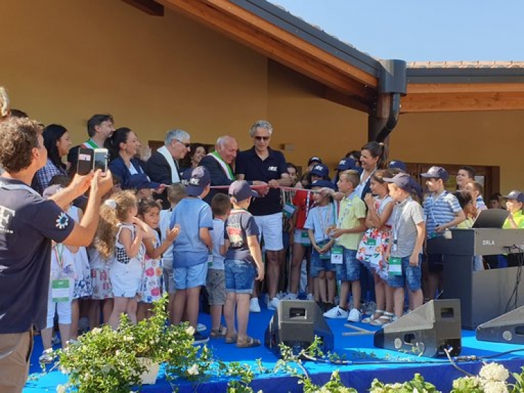 Mercoledì, 26 Giugno 2019 18:29 | Letto 4918 volte Clicca per ascolare il testo Muccia ha la sua nuova scuola. "Grazie, Andrea Bocelli" La nuova scuola a poche decine di metri dalla zona rossa di Muccia. Andrea Bocelli ha dimostrato ancora una volta che volere è potere e a poco più di un anno dallinaugurazione della scuola di Sarnano, oggi ha tagliato il nastro di quella di Muccia. Così, mentre le donazioni private permettono ai paesi colpiti dal sisma di ripartire, a fare da sfondo a questa festa cè il centro di uno dei paesi più colpiti, dove sembra che il tempo si sia invece fermato.In 119 giorni, la ABF, insieme ad altri partner, ha realizzato la scuola per i bambini dellinfanzia e delle elementari che, come hanno detto loro stessi in una poesia letta al pubblico presente, gli permetterà di tornare alla vita vera.Andrea, - ha detto il sindaco di Muccia, Mario Baroni, al cantante toscano - ripartiremo con te.Ha promesso che coglierà lesempio del tempo breve di questa ricostruzione, invece, il commissario straordinario alla ricostruzione, Piero Farabollini: È stato un esempio di come, attraverso le procedure di contributi che arrivano dal privato si possa, in tempi ragionevoli, raggiungere degli obiettivi. Noi dobbiamo trovare il modo per far sì che altrettanti situazioni, soprattutto per quel che riguarda gli interventi pubblici, si possano raggiungere obiettivi in tempi così rapidi.Soddisfatto Andrea Bocelli che ha già annunciato il dono della scuola di musica a Camerino: Un messaggio di speranza e ottimismo, - ha detto - quello che vogliamo dare ai bambini di questa scuola. vorrei che loro si mettessero alle spalle quello che hanno vissuto e da oggi guardassero con fiducia al futuro.Ulteriori approfondimenti online domani nel servizio video dedicato e la prossima settimana nelluscita de LAppennino Camerte.GS