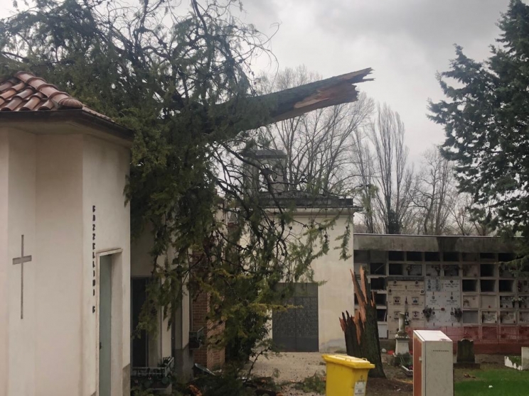 E' possibile che anche gli altri pini presentino le stesse condizioni di quello abbattuto a causa del venti e vogliamo evitare che altre piante continuino a rovinare la struttura del cimitero e le cappelline private".