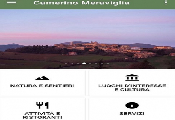 Camerino ha la sua App. Nasce “Camerino Meraviglia” un’app completamente gratuita, per Android, pensata e realizzata in collaborazione con E-lios, azienda di servizi informatici camerte, per accompagnare visitatori, turisti, curiosi nonché la stessa cittadinanza, attraverso le meraviglie della città e del suo territorio, impreziosendo ulteriormente e dando ancora più forza al progetto turistico culturale di rilancio, presentato qualche settimana fa. Uno strumento utile per scoprire i luoghi d’interesse, i parchi, le opere d’arte e i musei presenti in città. Grazie all'ascolto delle audioguide, sarà possibile essere accompagnati in tutto il percorso del trekking urbano nel centro storico di Camerino.