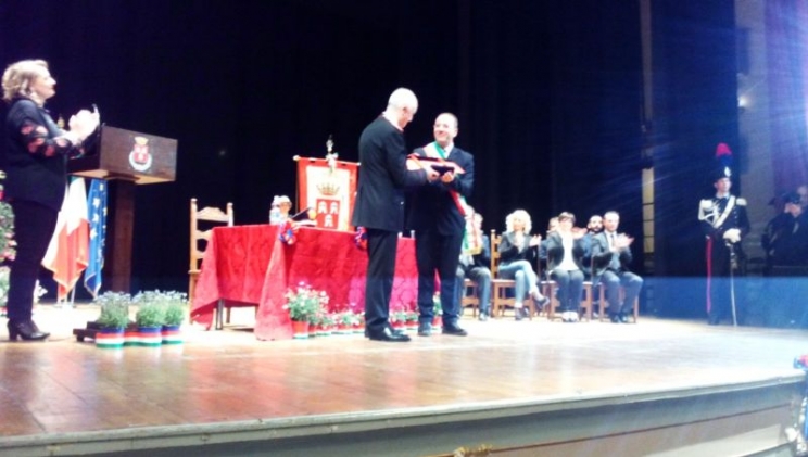 Lunedì, 02 Maggio 2016 11:58 | Letto 1574 volte Clicca per ascolare il testo Il Comandante dell'Arma dei Carabinieri cittadino onorario di Camerino Teatro Filippo Marchetti di Camerino gremito in ogni ordine di posti per la cerimonia di consegna della cittadinanza onoraria al generale Tullio Del Sette, comandante generale dellArma dei Carabinieri. Grazie al voto unanime del consiglio comunale, oggi questa città consegna la cittadinanza onoraria ad un uomo che, interpretando e facendo propri i valori fondanti dellArma e scegliendo di indossare la divisa, ne ha saputo conquistare i gradi fino a raggiungere il massimo di una carriera. Con queste parole il sindaco di Camerino, Gianluca Pasqui, ha posto il sigillo sulla consegna della chiave della città al generale Del Sette, sottolinenandone i legami, fin dagli anni degli studi universitari, con Camerino e sintetizzando il curriculum del comandante generale dellArma. Dalle tre lauree al lavoro nelle principali città e province dItalia fino alle missioni allestero sono solo alcune tappe di una carriera incredibile. Il profilo, però, su cui mi voglio concentrare è quello dellumanità, della capacità di umanizzare di un fedele servitore dello Stato.Teatro Filippo Marchetti di Camerino gremito in ogni ordine di posti per la cerimonia di consegna della cittadinanza onoraria al generale Tullio Del Sette, comandante generale dell'Arma dei Carabinieri. "Grazie al voto unanime del consiglio comunale, oggi questa città consegna la cittadinanza onoraria ad un uomo che, interpretando e facendo propri i valori fondanti dell'Arma e scegliendo di indossare la divisa, ne ha saputo conquistare i gradi fino a raggiungere il massimo di una carriera". Con queste parole il sindaco di Camerino, Gianluca Pasqui, ha posto il sigillo sulla consegna della chiave della città al generale Del Sette, sottolinenandone i legami, fin dagli anni degli studi universitari, con Camerino e sintetizzando il curriculum del comandante generale dell'Arma. "Dalle tre lauree al lavoro nelle principali città e province d'Italia fino alle missioni all'estero sono solo alcune tappe di una carriera incredibile. Il profilo, però, su cui mi voglio concentrare è quello dell'umanità, della capacità di umanizzare di un fedele servitore dello Stato".