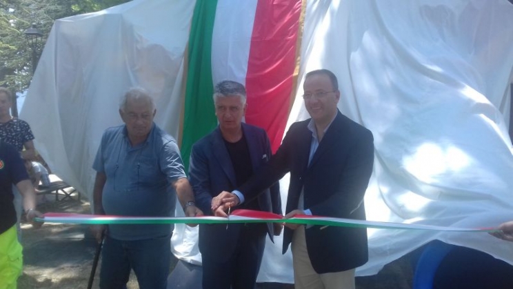Dopo il taglio del nastro Pasqui ha voluto omaggiare gli intervenuti con una moneta recante lo stemma di Camerino per poi, insieme agli altri colleghi sindaci, cimentarsi nel "fare lo scivolo" nel nuovo gioco. Così, per qualche momento, tutti sono ritornati ad essere bambini.