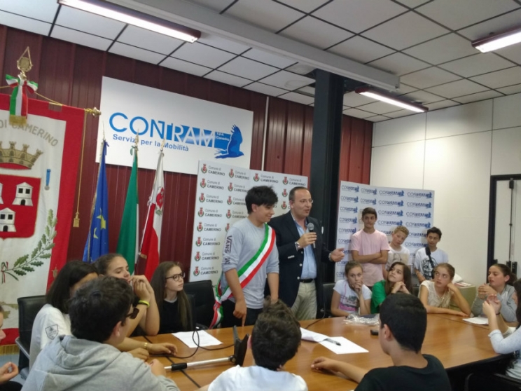 Prima seduta del Consiglio comunale delle Ragazze e dei Ragazzi di Camerino. Dopo l'insediamento dello scorso 15 maggio,  primo tavolo di lavoro istituzionale per la "giunta junior" guidata dal neo sindaco eletto Francesco Palenacon l’importante compito di rappresentare il gruppo dei giovani amministratori nei prossimi mesi di mandato. Presente il sindaco Gianluca Pasqui che, in apertura , ha consegnato la fascia ufficiale a Francesco Palena che la conserverà per due anni.