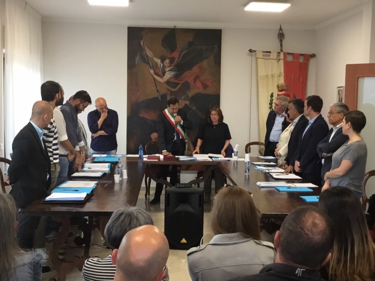 Grande partecipazione della comunità, ieri, all’insediamento del nuovo sindaco di San Ginesio, Giuliano Ciabocco, e del nuovo consiglio comunale eletto il 10 giugno scorso.