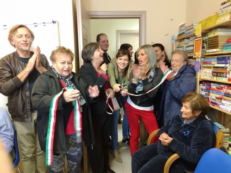 Taglio del nastro per la “ Biblioteca dei ricordi” presso Il Centro Alzheimer Millecolori “ Tempo alle famiglie “ di Camerino. Una bella novità, accolta col sorriso dai numerosi frequentatori della struttura di riabilitazione e assistenza, presenti la coordinatrice e psicologa dott.ssa Susanna Cipollari, il coordinatore degli ambiti sociali 16-17-18 dott. Valerio Valeriani, l’assessore ai servizi sociali Antonella Nalli. All’inaugurazione ha partecipato anche la famiglia Sensini di Roma che, a memoria del congiunto dott. Paolo, ha donato oltre 2000 libri alla comunità. Una targa apposta sugli scaffali, ne ricorderà per sempre il generoso e gradito gesto.