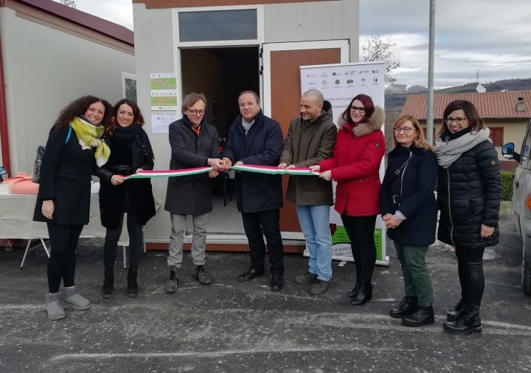 Taglio del nastro questa mattina per lo sportello "Family Point". Il punto d'ascolto è attivo nella struttura container dell'area del Vallicenter a Camerino. All'inaugurazione erano presenti il coordinatore degli Ambiti Sociali dr. Valerio Valeriani, il sindaco Gianluca Pasqui, la coordinatrice del Family Point dott.ssa Giorgia Pellegrini e i collaboratori del punto d'ascolto. Attivo oltre che nella città ducale anche presso i Centri per Famiglia di Matelica, Castelraimondo e San Severino Marche,  lo sportello,  come sottolineato dal dr. Valeriani, è un servizio di frontiera e di prossimità; uno spazio che consente di potenziare dei servizi di prima accoglienza nei confronti della popolazione e nel quale confluiscono più iniziative.  Due le tipologie di servizi che potranno essere offerti all'interno della postazione; oltre a quelli propri del "Family Point" è infatti presente anche l'operatore dello sportello ufficio di promozione sociale, punto di riferimento per  i cittadini della zona  in relazione a tutti i bisogni di  tipo sociale e  in particolare per l'area del disagio economico ( problematiche riguardanti reddito di cittadinanza, accesso ai servizi, assistenza domicilare, trasporti sociali ecc. ).  " Quanto all'importante iniziativa del Centro per famiglie "Family Point"  che abbiamo spinto in questi ultimi anni- ha spiegato Valeriani- si tratta di un servizio a bassa soglia che interviene prima che vi sia un'emergenza e  permette di mettere in atto prevenzione  e interventi precoci  più leggeri (non in luoghi sanitari) per  tutte  le situazioni iniziali di disagio legate a più fattori. Intorno ai Family Point sono poi creati più progetti che vanno dalle relazioni familiari al gioco d'azzardo, dalle dipendenze patologiche o ludopatie di vario tipo  al bullismo o al disagio psicologico provocato dalle difficoltà di chi vive il post sisma".