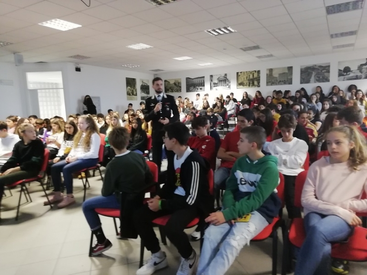 Capitano Roberto Nicola Cara, Comandante della Compagnia dei Carabinieri di Camerino. Accrescere nei giovani la cultura della legalità, educare all'esercizio della democrazia nei limiti e nel rispetto dei diritti e delle regole quali membri di una società civile, obiettivo dell'incontro che ha visto il Capitano Cara toccare in particolare i temi degli aspetti giuridici di alcuni reati secondo le varie fasce d’età giovanili, dell’abuso di alcol e del consumo di droga e delle possibili conseguenze penali, ma anche i fenomeni sempre più diffusi del bullismo e della sua “evoluzione” in cyberbullismo.