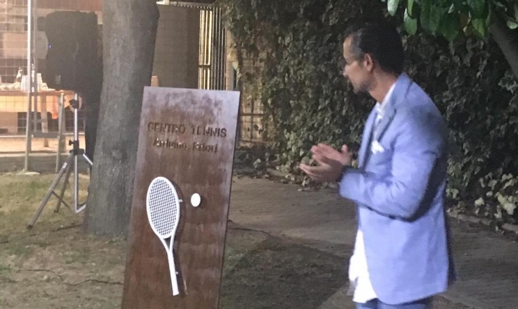 La cerimonia di intitolazione e di scoprimento della stele commemorativa è avvenuta nell’area antistante ai campi da tennis, alla presenza del sindaco Tiziano Consoli e del gestore della struttura Luca Latini.